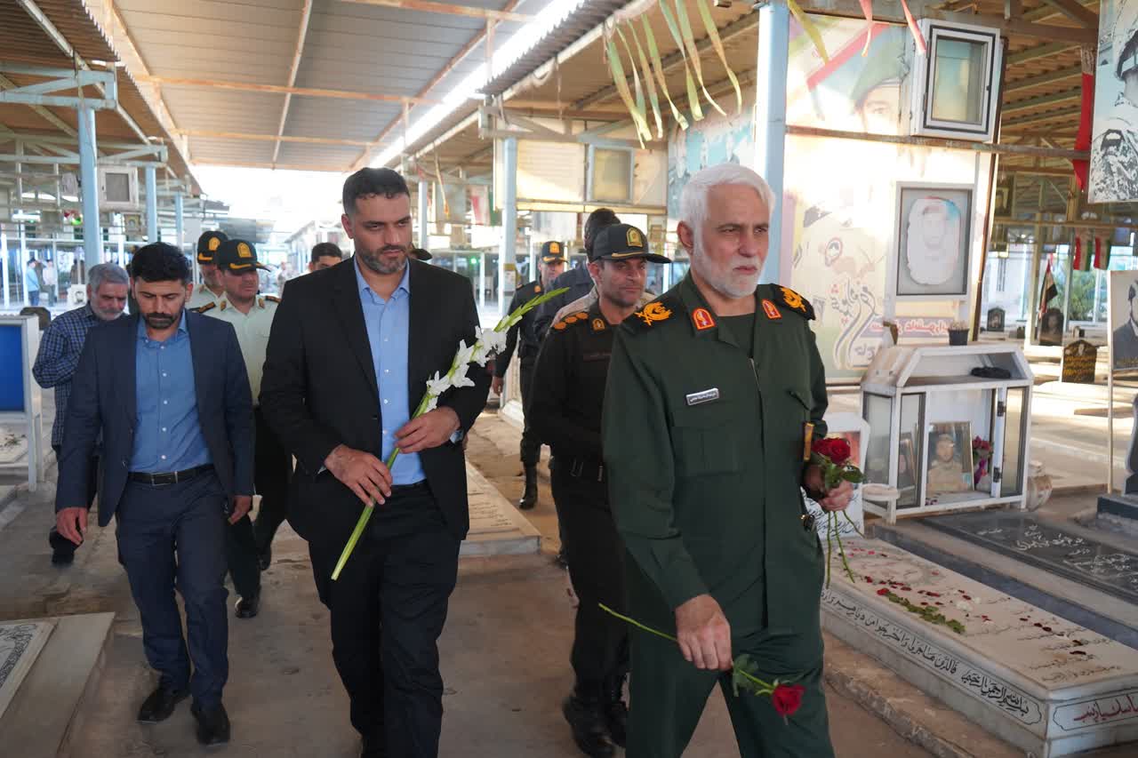 آیین غبارروبی و عطرافشانی قبور شهدا با عنوان”مهمانی لاله ها”، به مناسبت هفته دفاع مقدس روز پنجشنبه سوم مهرماه ۱۴۰۴ با حضور عبدالعظیم شمخانی سرپرست فرمانداری اهواز، امیر سرتیپ دوم حسین محمدشفیعی،فرمانده قرارگاه منطقهای جنوب غرب آجا، سردار احمدرضا حاجتی مدیر کل حفظ آثار و نشر ارزش های دفاع مقدس ، سید رضا حسینی مدیر کل بنیاد شهید و امور ایثارگران خوزستان ، جمعی از فرماندهان و نیروهای نظامی و انتظامی، مسئولین استانی و شهرستانی و خانواده های شهدا در بهشت آباد اهواز برگزار شد.